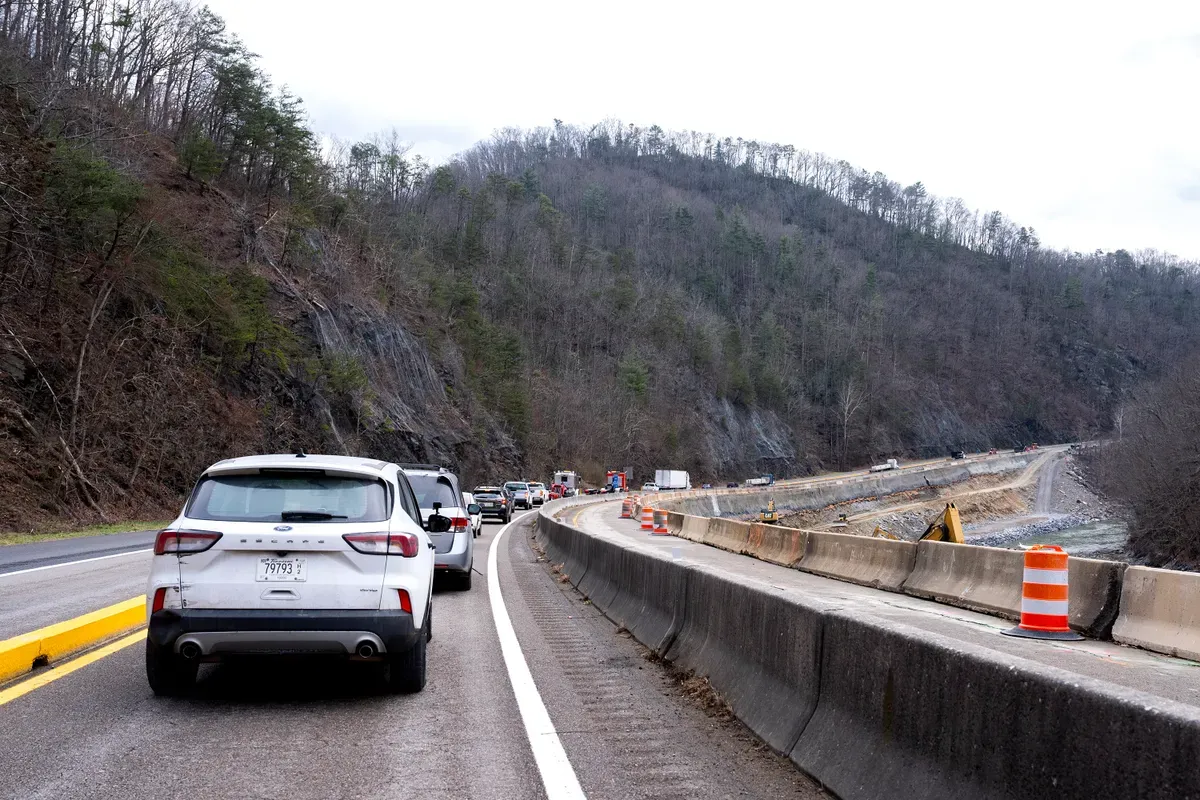 Interstate 40 between North Carolina and Tennessee reopened this weekend after Hurricane Helene caused closures in October. The section from Exit 7 in North Carolina to Exit 447 in Tennessee will have one lane open in each direction, with some restrictions, including a 35 mph speed limit and narrower lanes. Eastbound lanes are still under repair with an emergency-only lane. The full restoration of the highway will take years, and North Carolina has hired Ames Construction for the permanent rebuild.