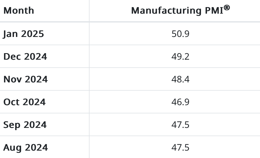 The manufacturing industry saw growth in January, with the Institute for Supply Management’s (ISM) Purchasing Managers’ Index (PMI) rising to 50.9%, up from 49.3% in December.