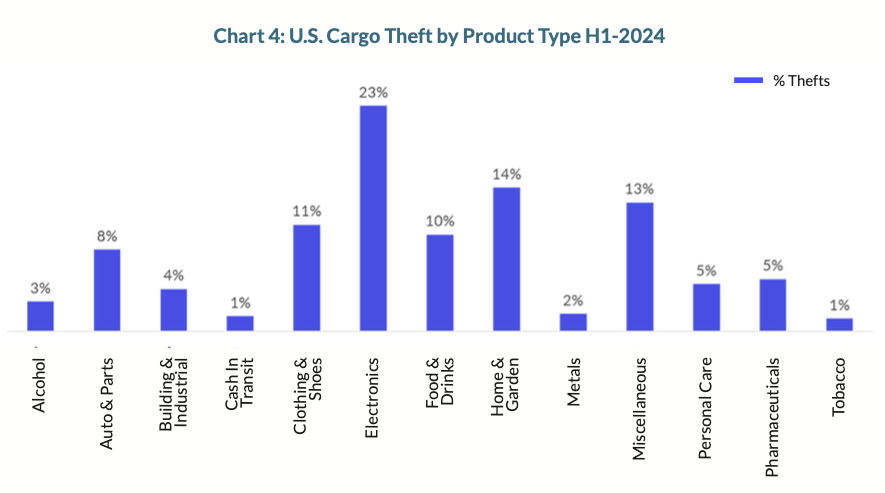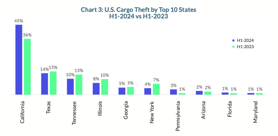 - California: Accounts for 45% of all reported cargo thefts.