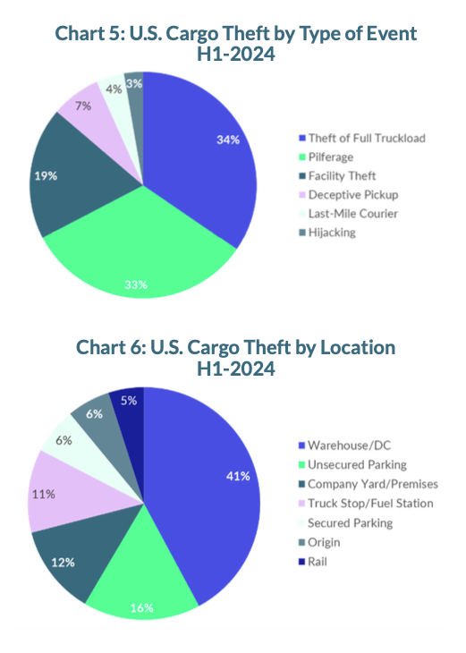 Warehouse and distribution centers were the primary locations for large-scale cargo thefts in the first half of 2024. Unsecured parking areas, which now rank second with 19% of incidents, saw a decline of 13 percentage points compared to the same period last year.