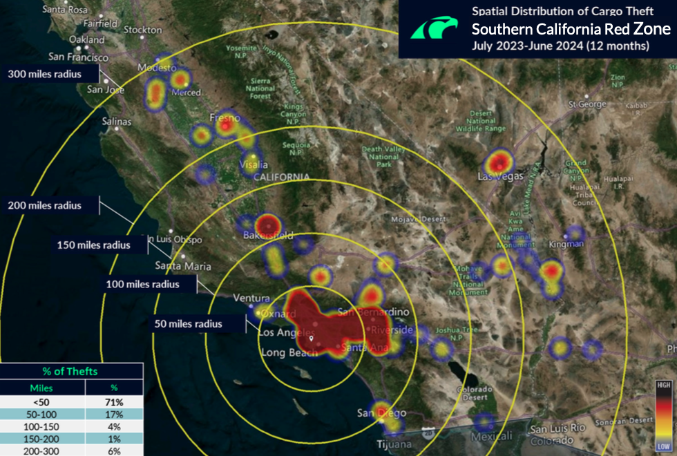 - Southern California Red Zone: The first 200 miles of travel for shipments leaving this area account for 36% of the country’s thefts.
